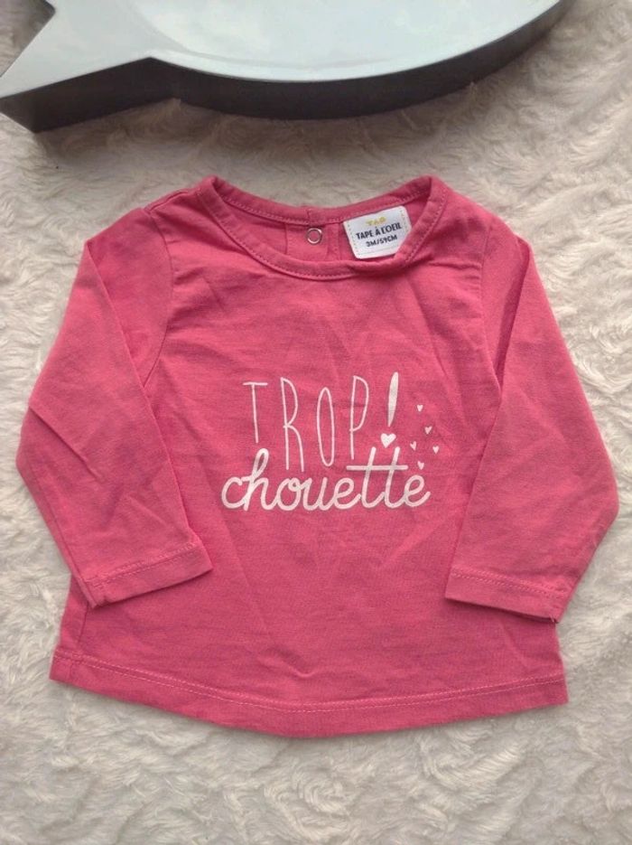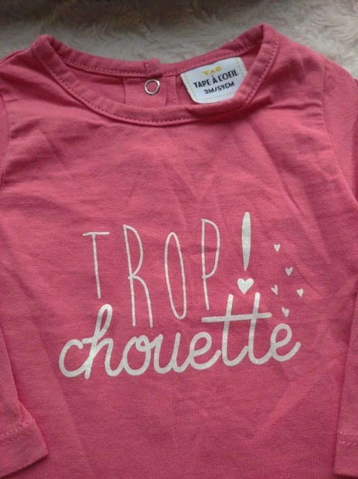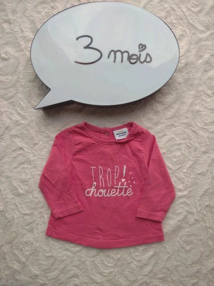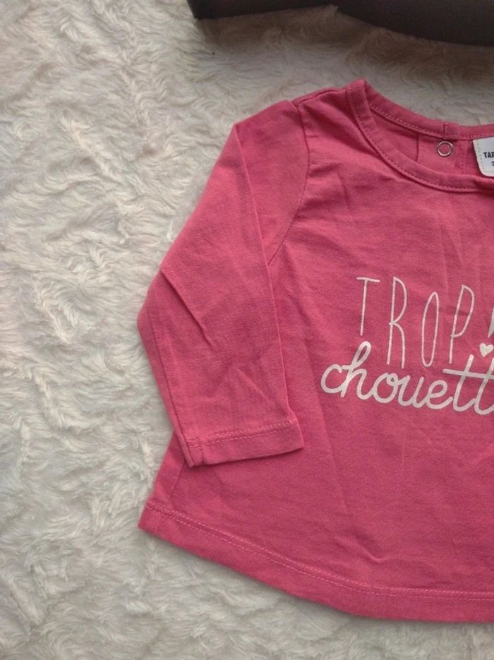 Tee shirt chemise manches longues Fille 3 mois Trop chouette Tao 100% coton