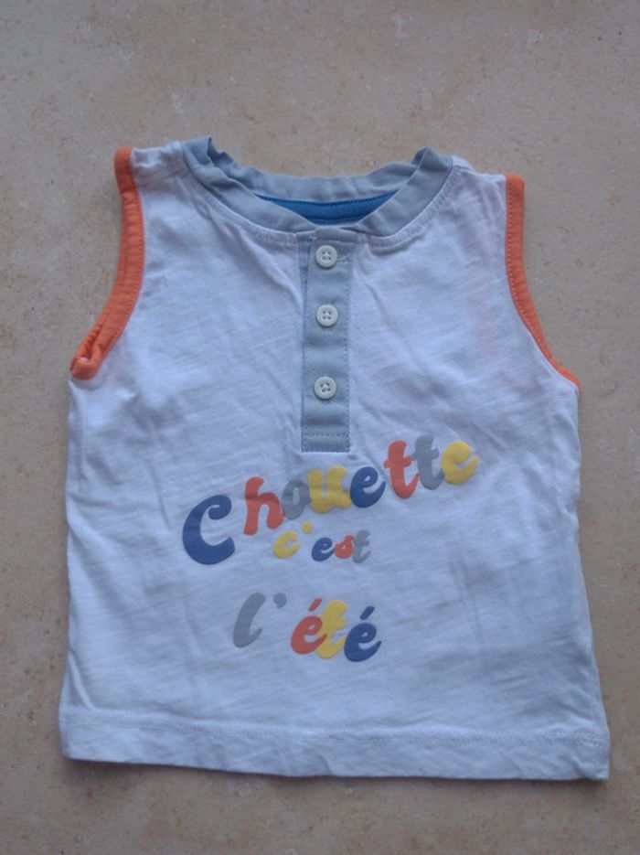 Ensemble (tee shirt sans manche+pantalon) Garçon 6 mois Chouette l'été Mots d'enfants 100% coton