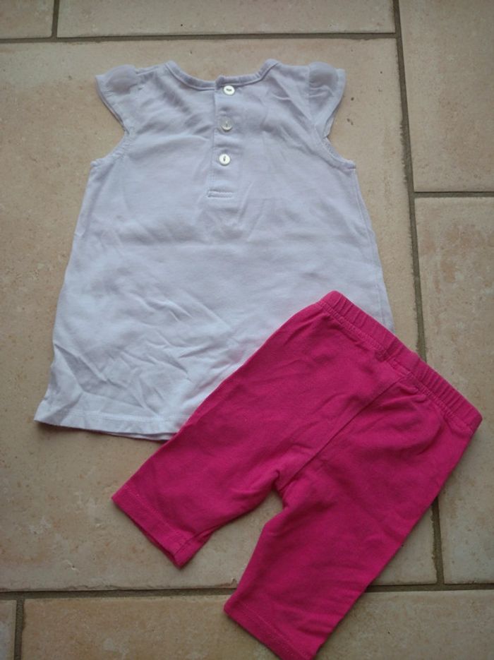 Ensemble (tee shirt sans manche+legging) Fille 6 mois Fleurs - photo numéro 3