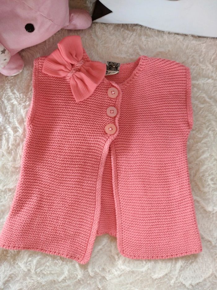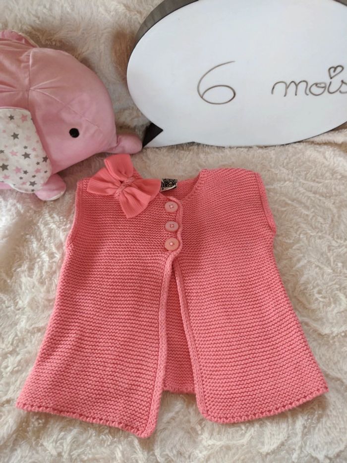 Gilet boléro sans manche petite maille Fille 6 mois Tao - photo numéro 1
