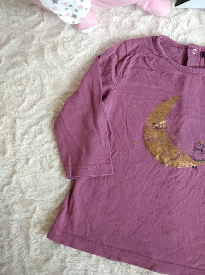 Tee shirt chemise manches longues Fille 12 mois Lune étoiles princesse Kiabi - photo numéro 3