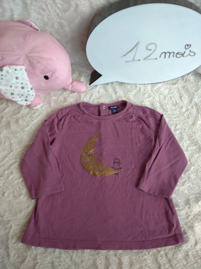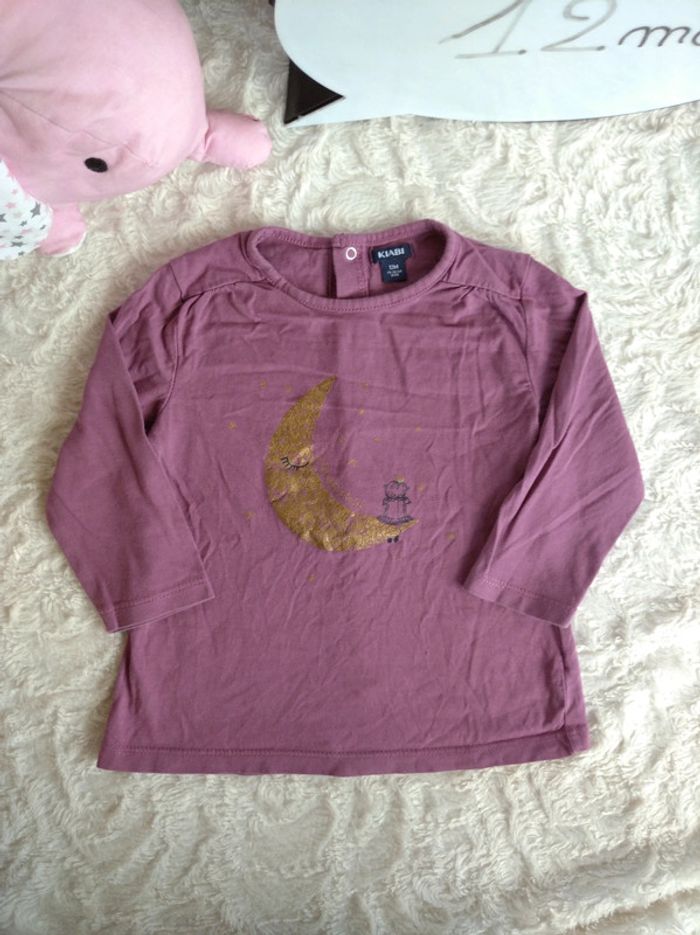 Tee shirt chemise manches longues Fille 12 mois Lune étoiles princesse Kiabi - photo numéro 1