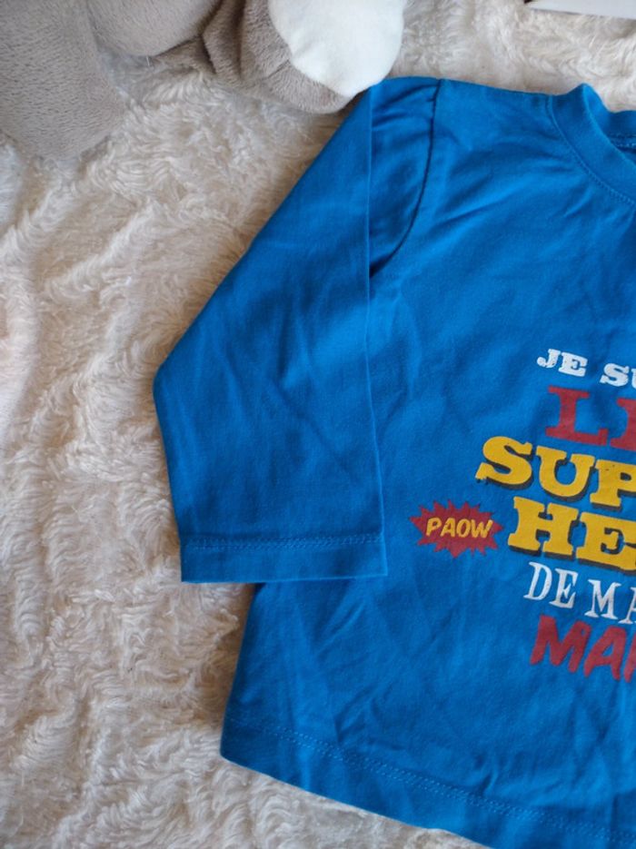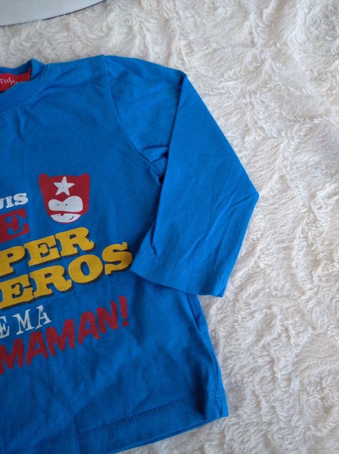 Tee shirt chemise manches longues Garçon 12 mois Super héro de ma maman Tissaia 100% coton - photo numéro 7