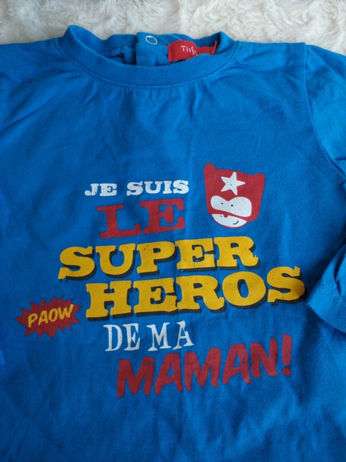 Tee shirt chemise manches longues Garçon 12 mois Super héro de ma maman Tissaia 100% coton - photo numéro 2