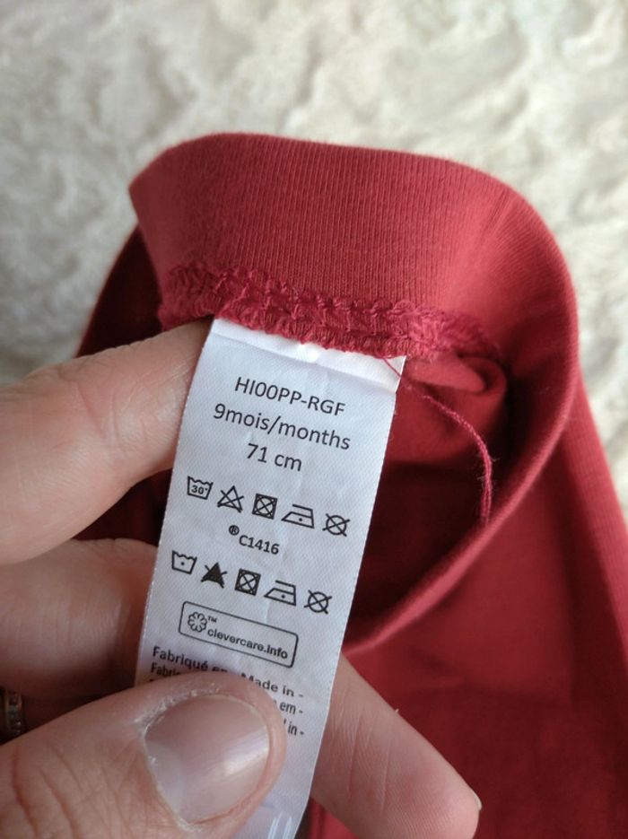 Très bon état, peu porté. Le haut est 100% coton. Le bas présente un micro défaut de couture sur l'arrière (voir les 2 dernières photos). #nathatfcFille9mois