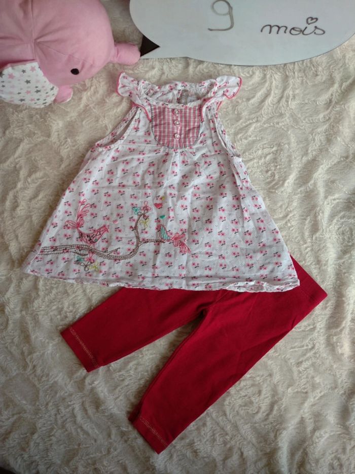 Ensemble (tunique longue sans manche+legging) Fille 9 mois Fleurs Orchestra