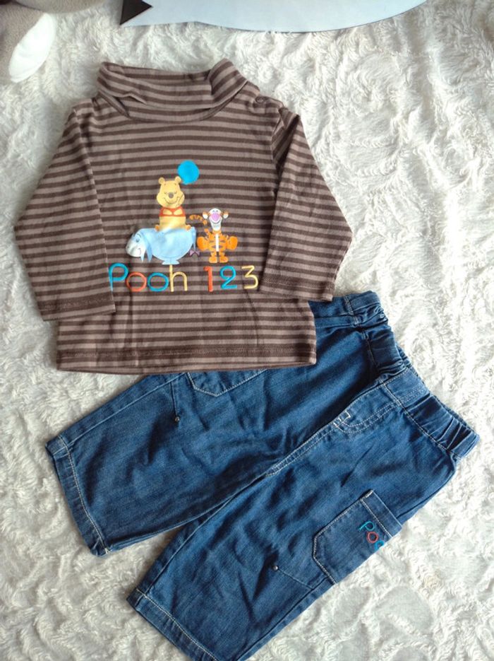 Ensemble (sous pull col roulé+pantalon ample jeans) Garçon 6 mois Tigrou Winnie Pooh 100% coton - photo numéro 1
