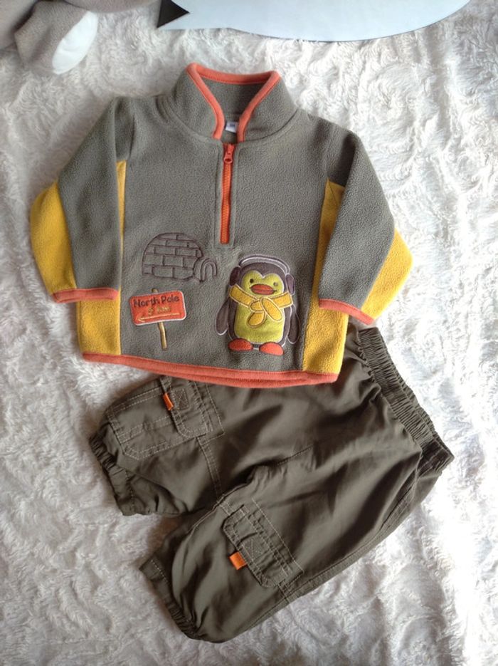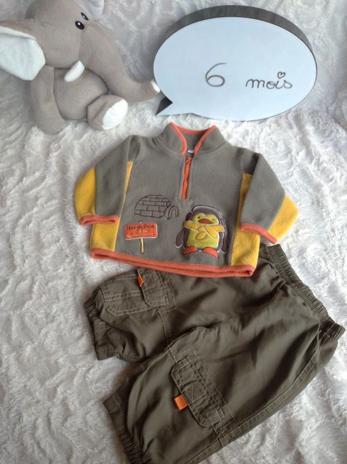 Ensemble (pull Pingouin Pôle nord igloo+pantalon confortable offert) Garçon 6 mois