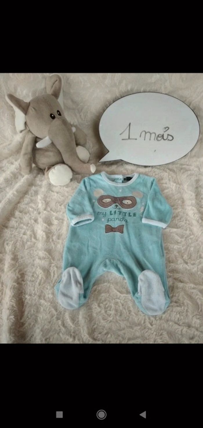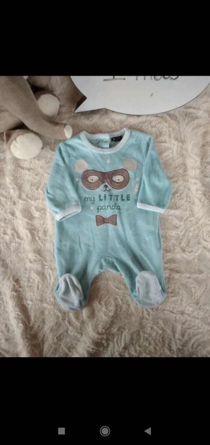Pyjama grenouillère velours Garçon 1 mois "My little panda" Panda masqué Kiabi