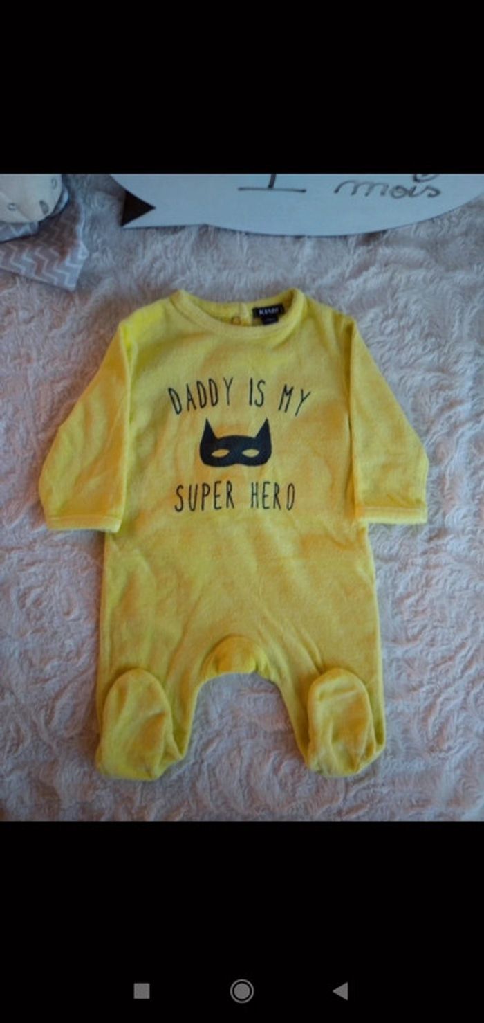 Pyjama grenouillère velours Mixte 1 mois Daddy super hero Papa Kiabi