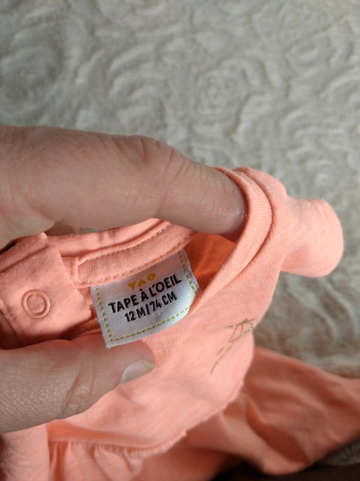Très bon état, la couleur est un peu plus vive que sur les photos je trouve. Peut se porter comme une tunique avec un legging par exemple ou en robe courte (sur la dernière photo j'ai montré la taille avec une robe Disney 12 mois). #nathatfcFille12mois