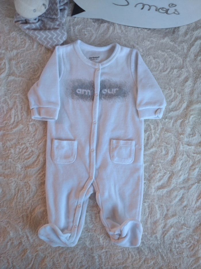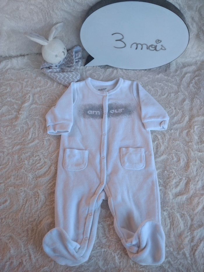 Pyjama grenouillère velours Mixte 3 mois Amour Vertbaudet