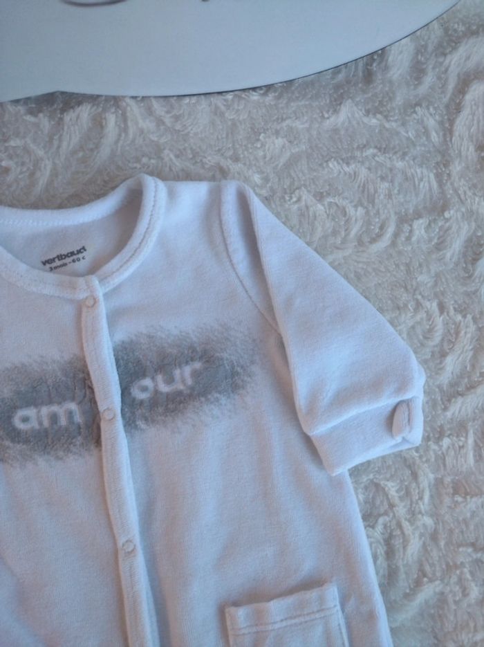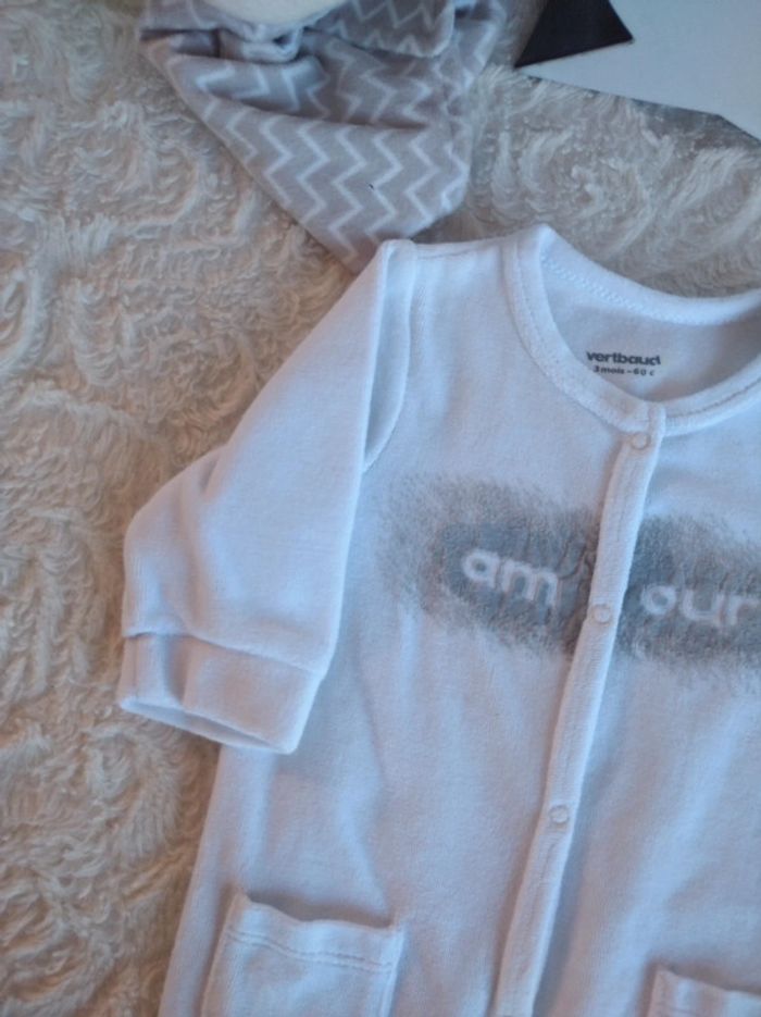 Très bon état, tout doux. Ouverture par pressions sur le devant et au niveau de l'entrejambe pour un habillage et un change plus facile. #nathatfcMixte3mois #nathatfcFille3mois #nathatfcGarçon3mois