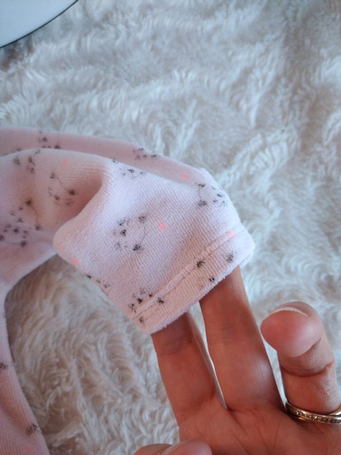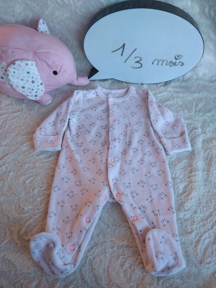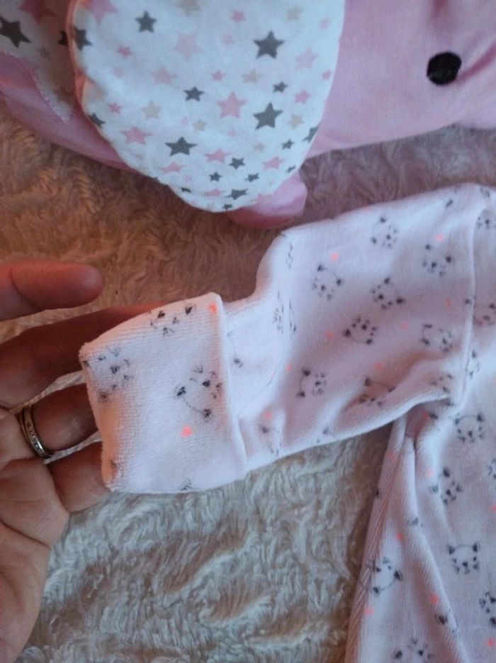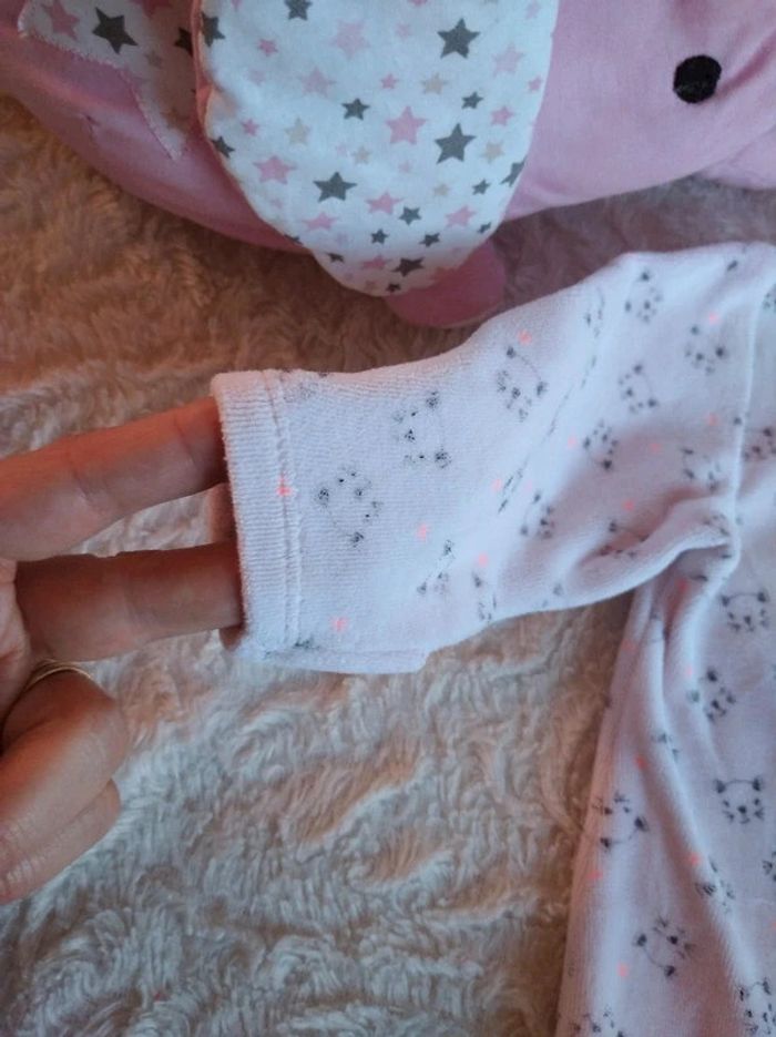 Très bon état, peu porté, tout doux. Possibilité de retourner le bout des manches pour un faire des mouffles. Ouverture par pressions sur le devant et au niveau de l'entrejambe pour un habillage et un change plus facile. #nathatfcFille1mois #nathatfcFille3mois