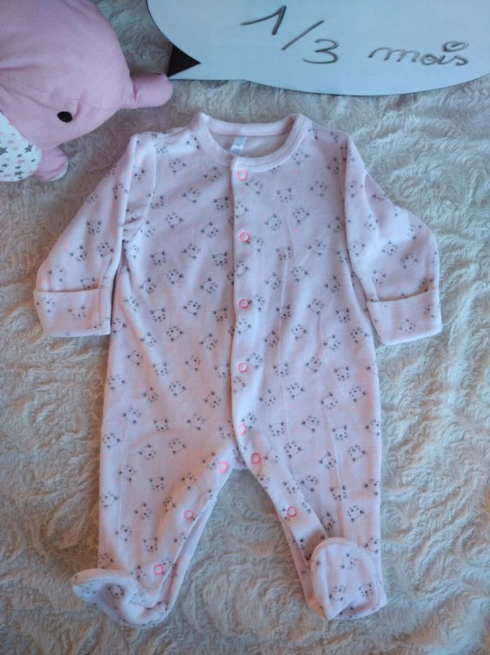 Pyjama grenouillère velours Fille 1/3 mois Chat Tex Baby - photo numéro 1