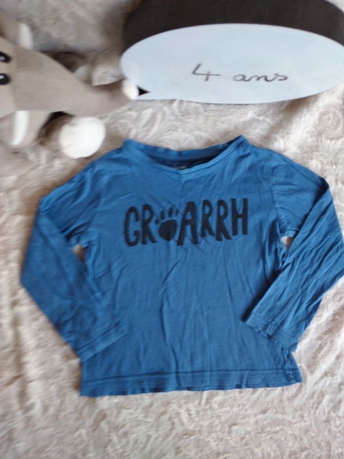 Tee shirt chemise manches longues Garçon 4 ans Ours Groarrh Kiabi