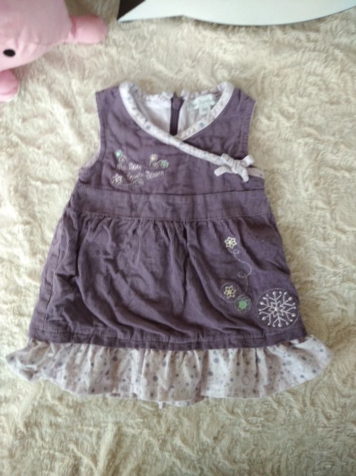 Robe velours doublée Fille 3 mois Flocons de neige Petit Kimbaloo 100% coton - photo numéro 1