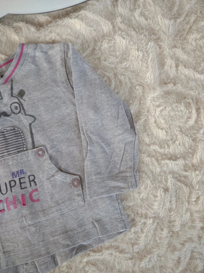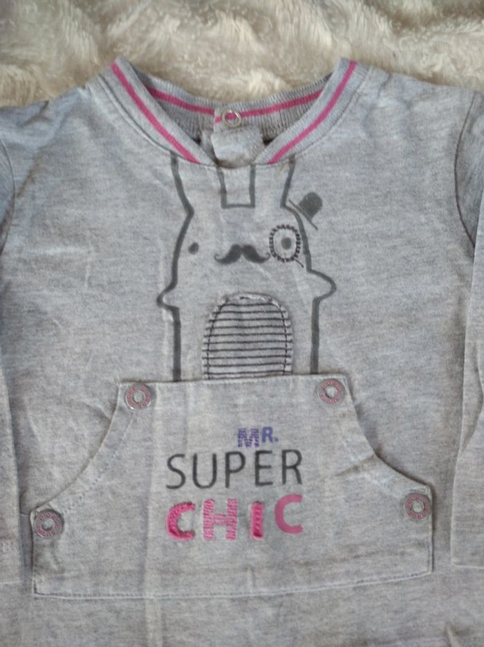 Tee shirt chemise manches longues Garçon 12 mois Mr Super Chic lapin Sucre d'orge 100% coton - photo numéro 3