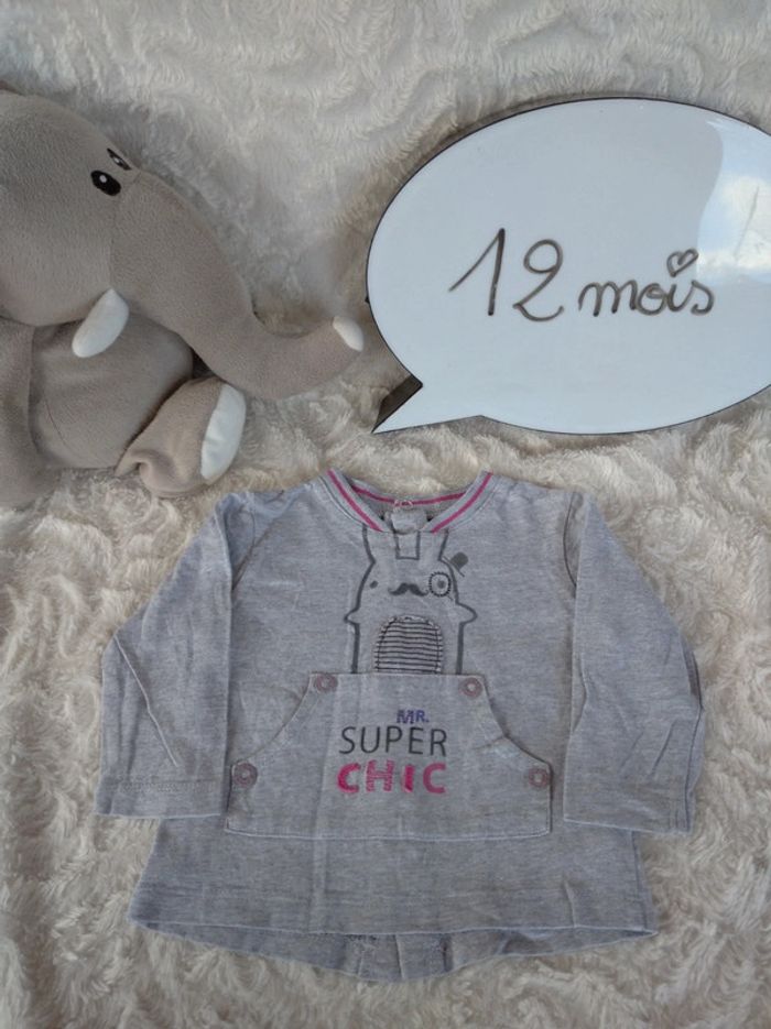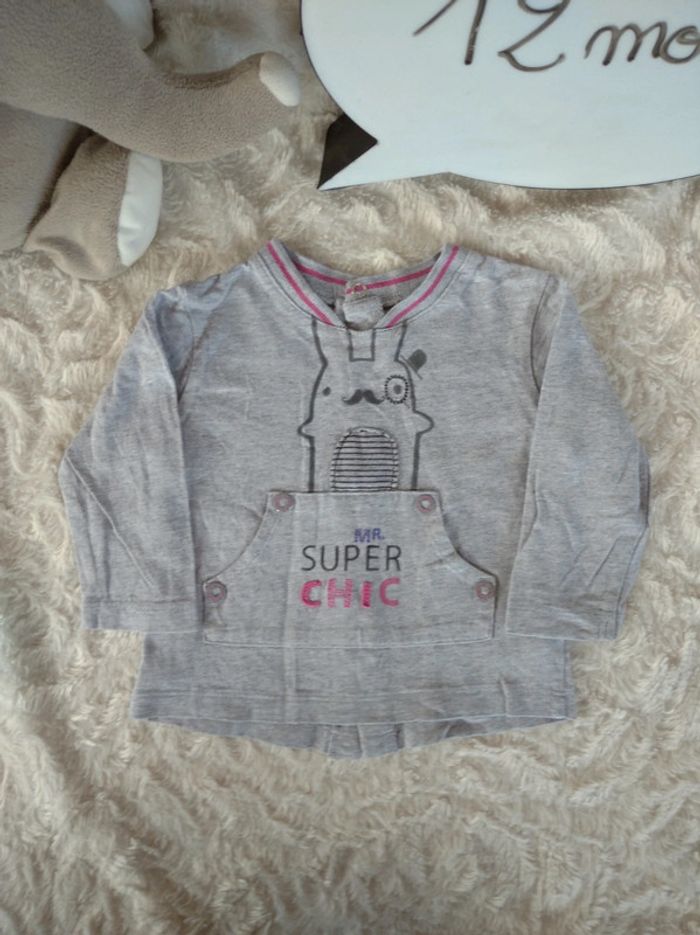 Tee shirt chemise manches longues Garçon 12 mois Mr Super Chic lapin Sucre d'orge 100% coton