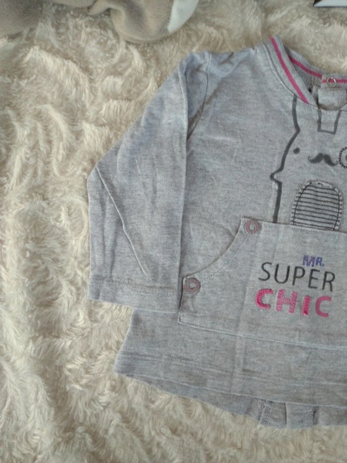 Tee shirt chemise manches longues Garçon 12 mois Mr Super Chic lapin Sucre d'orge 100% coton - photo numéro 2
