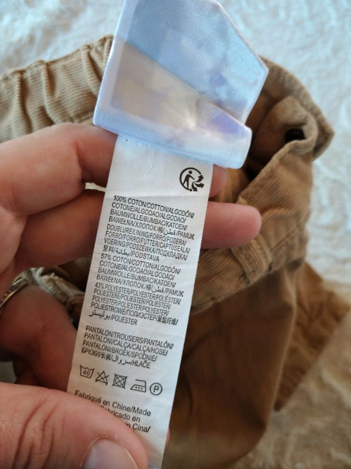 Pantalon velours doublé Garçon 6 mois Kiabi 100% coton - photo numéro 9