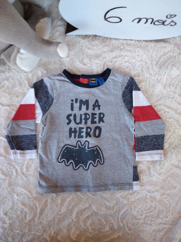Tee shirt chemise manches longues Garçon 6 mois I'm a super hero Batman