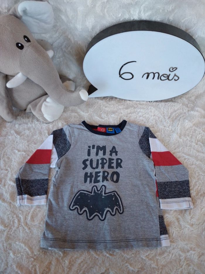 Tee shirt chemise manches longues Garçon 6 mois I'm a super hero Batman - photo numéro 1