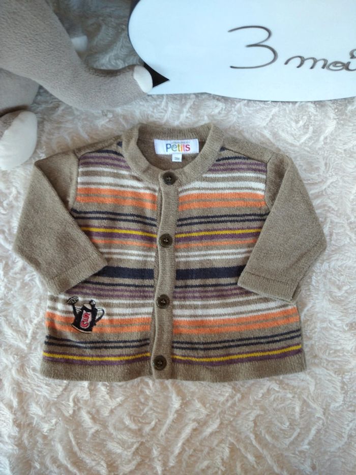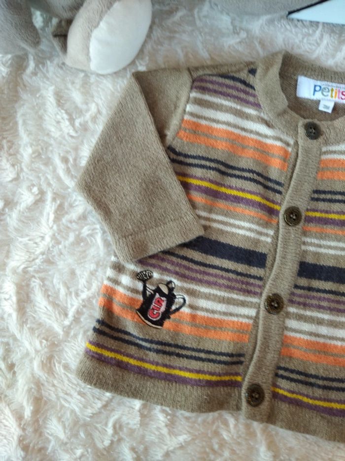Très bon état même si porté plusieurs fois, très légèrement pelucheux. 1 bouton supplémentaire. #nathatfcGarçon3mois
