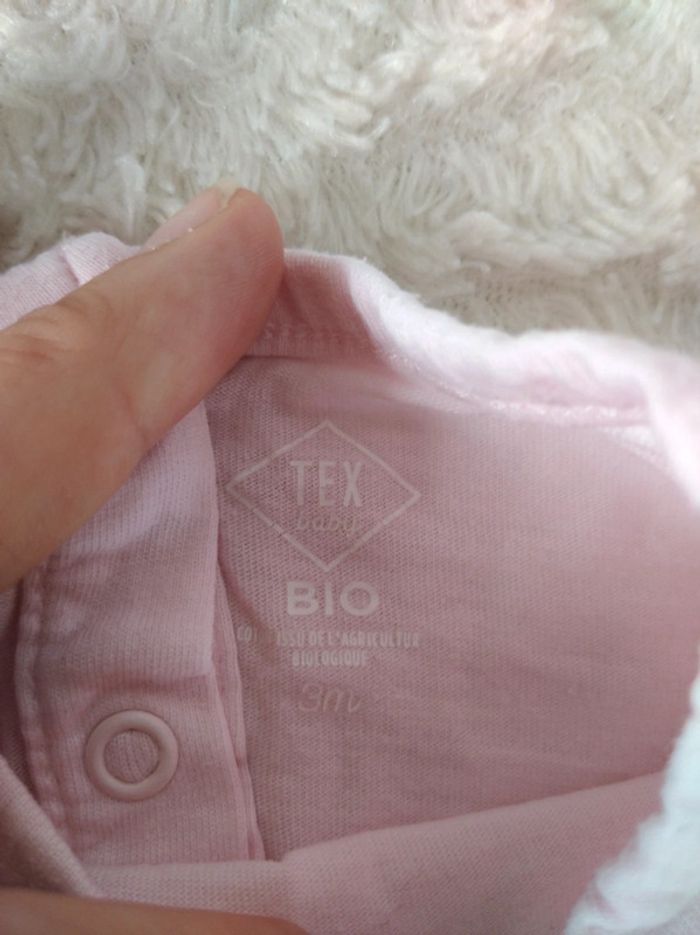 Tee shirt chemise manches longues Fille 3 mois Tex Baby 100% coton biologique - photo numéro 3
