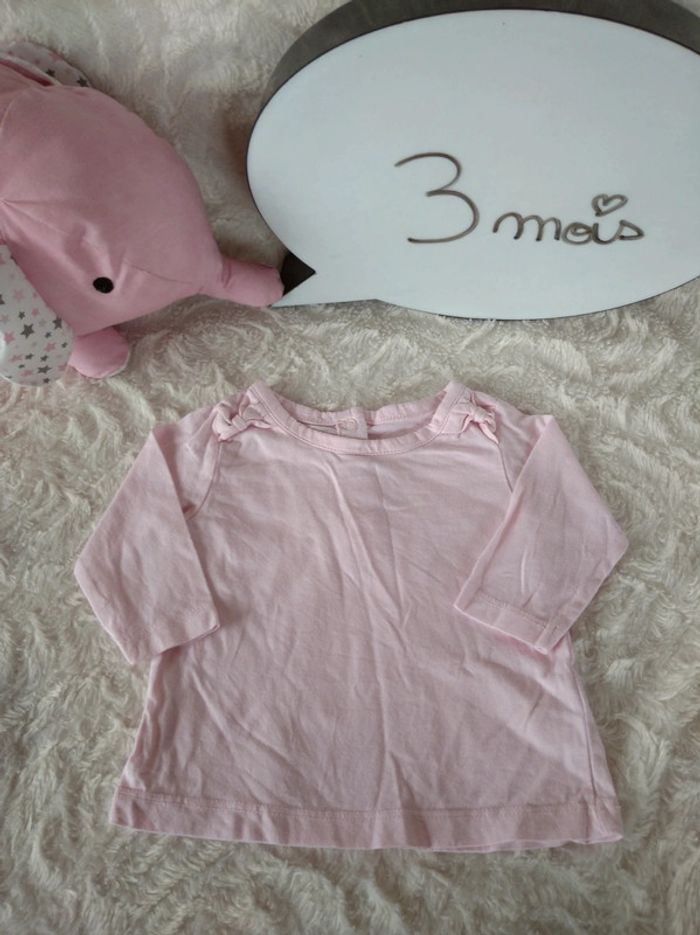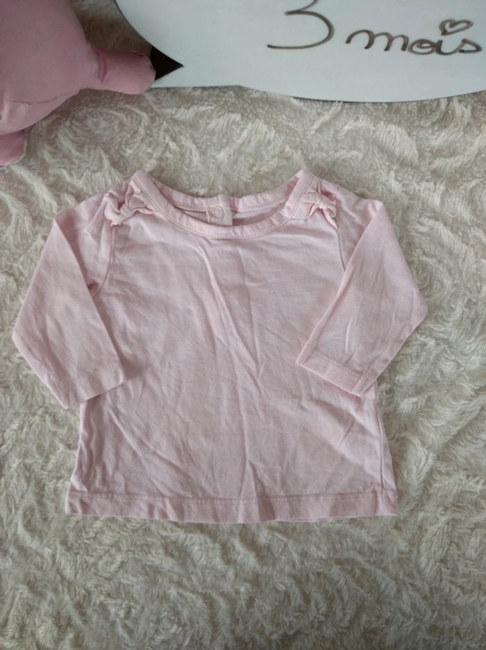 Tee shirt chemise manches longues Fille 3 mois Tex Baby 100% coton biologique - photo numéro 1