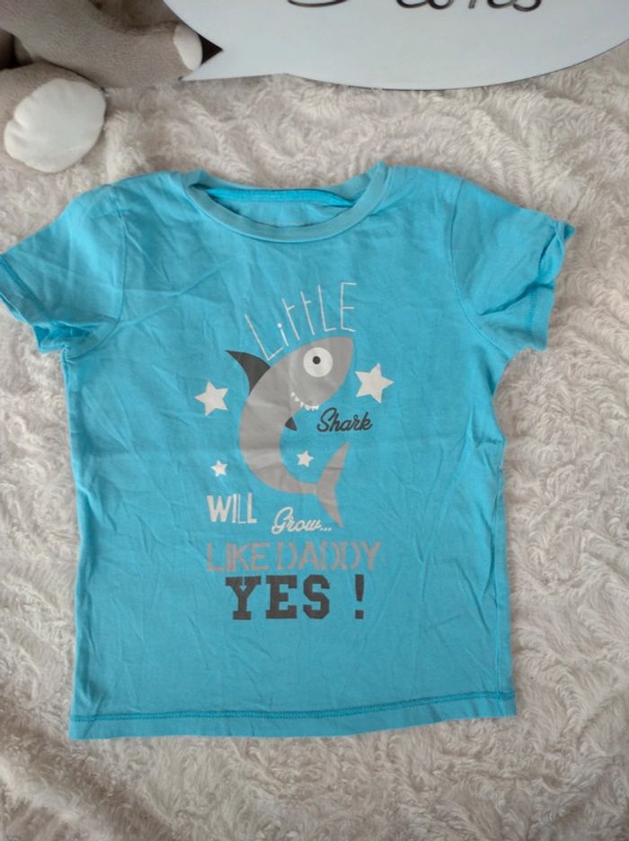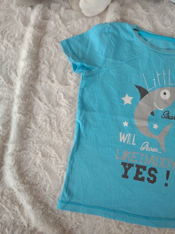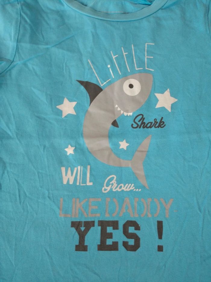 Tee shirt chemise manches courtes Garçon 3 ans Requin Papa Little shark grow like Daddy In Extenso