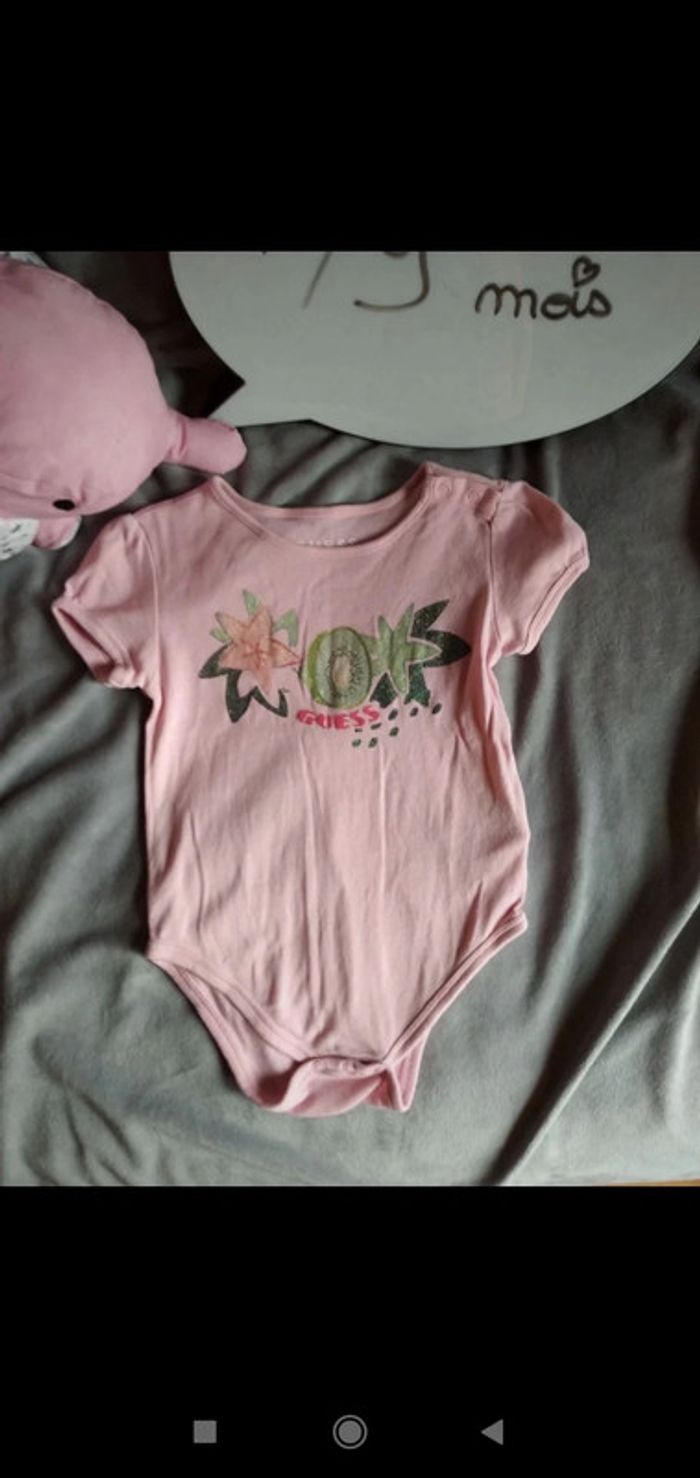 Body manches courtes Fille 6/9 mois Fleurs et fruits Kiwi pailleté Guess Los Angeles 100% coton - photo numéro 6