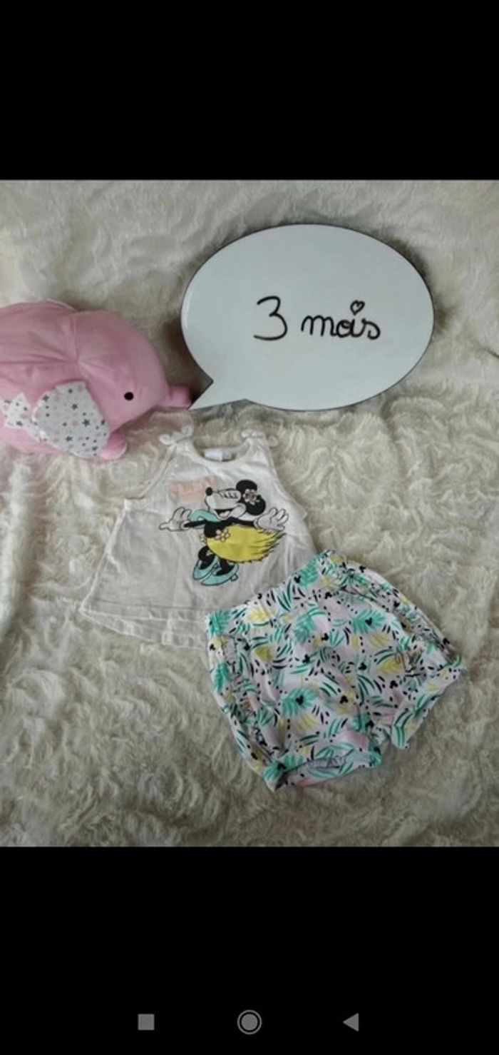 Ensemble été (tee shirt sans manche+short) Fille 3 mois "Dancing" Minnie Disney Baby 100% coton - photo numéro 1