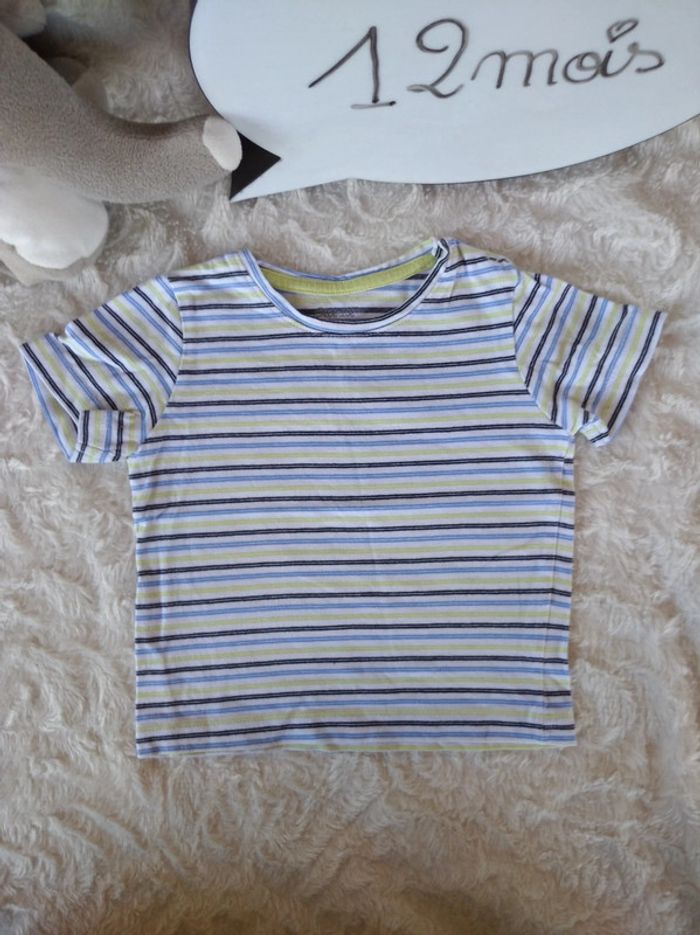 Tee shirt chemise manches courtes à rayures Garçon 12 mois Bébé rêve 100% coton