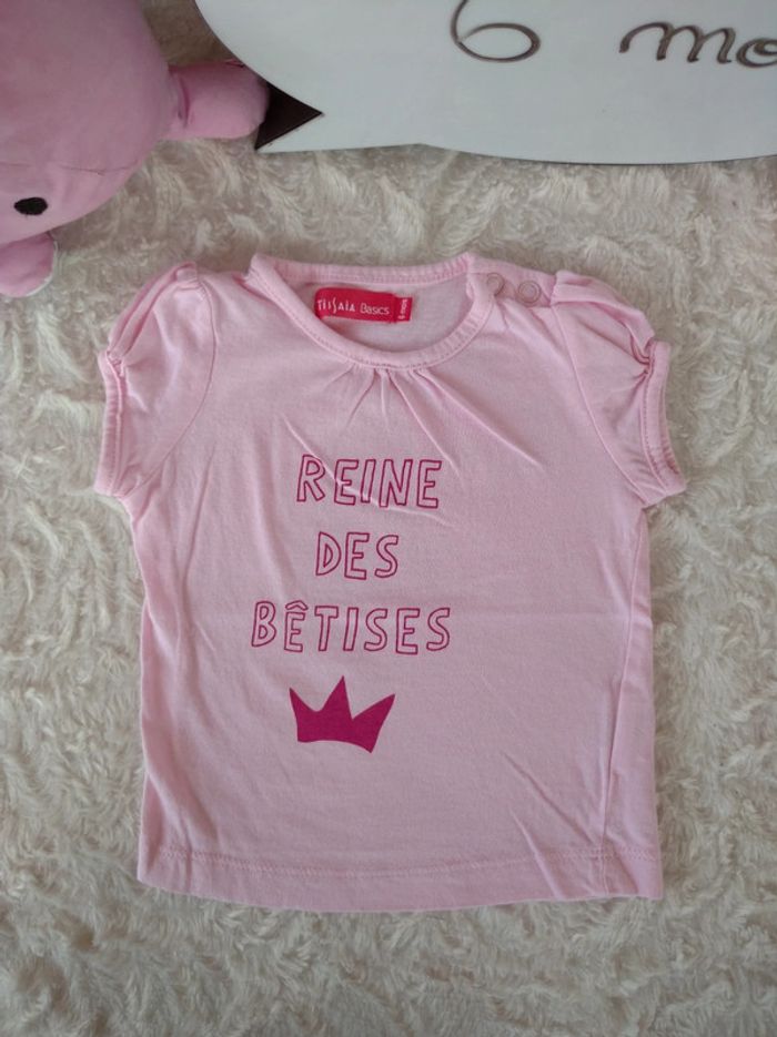 Tee shirt chemise manches courtes Fille 6 mois couronne reine des bêtises Tissaia 100% coton - photo numéro 1