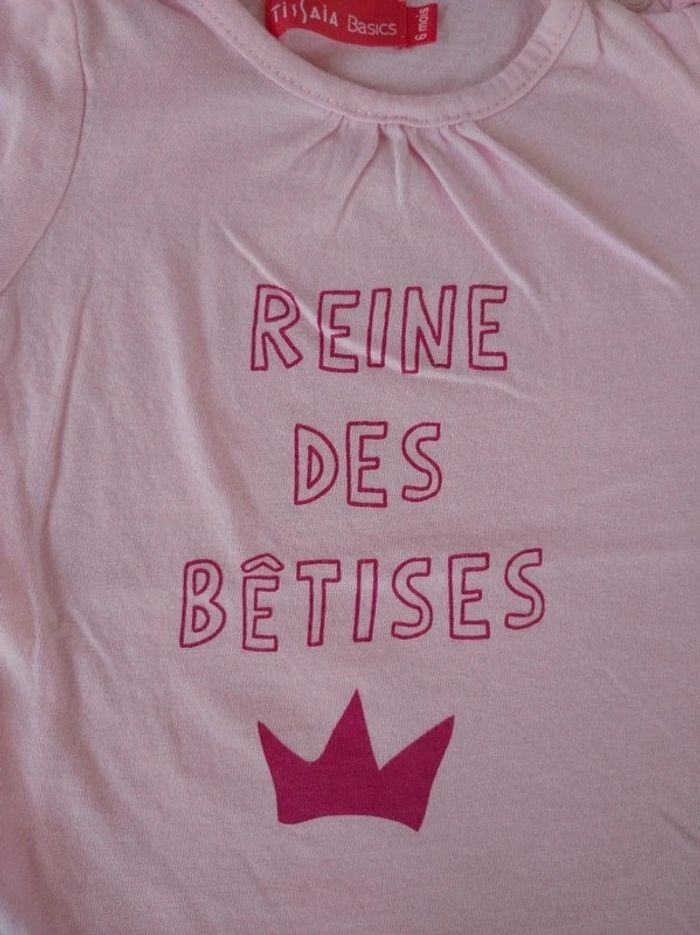 Tee shirt chemise manches courtes Fille 6 mois couronne reine des bêtises Tissaia 100% coton - photo numéro 4