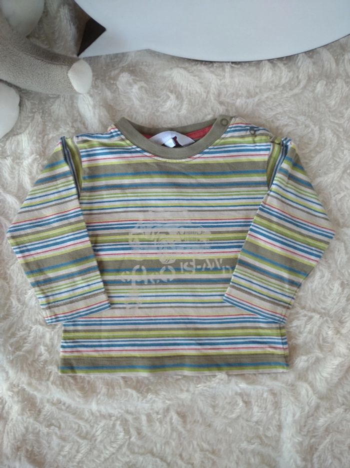 Tee shirt chemise manches longues rayé Garçon 6 mois voiture tex 100% coton - photo numéro 1