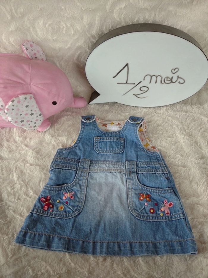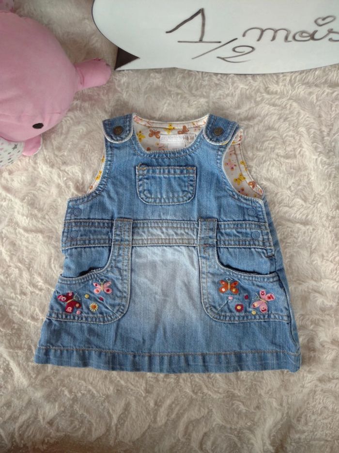 Robe style salopette jeans Fille 1 2 mois Fleurs Papillon H&M - photo numéro 1