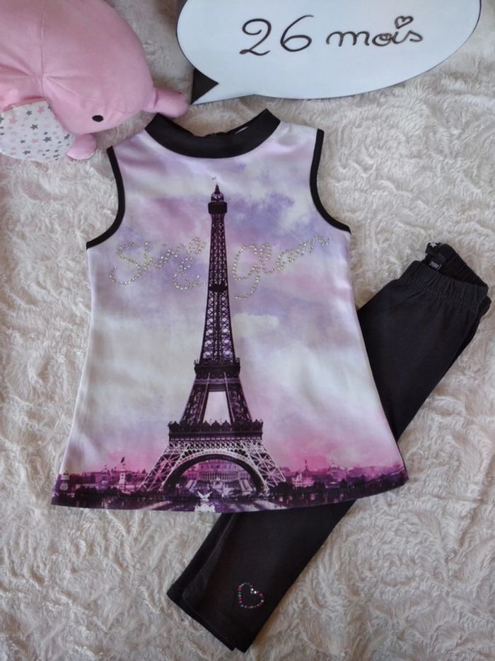 Ensemble (robe tunique + legging) Fille 26 mois Tour Eiffel Shine & Glam Punkidz