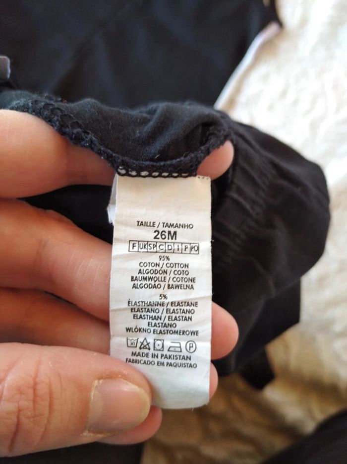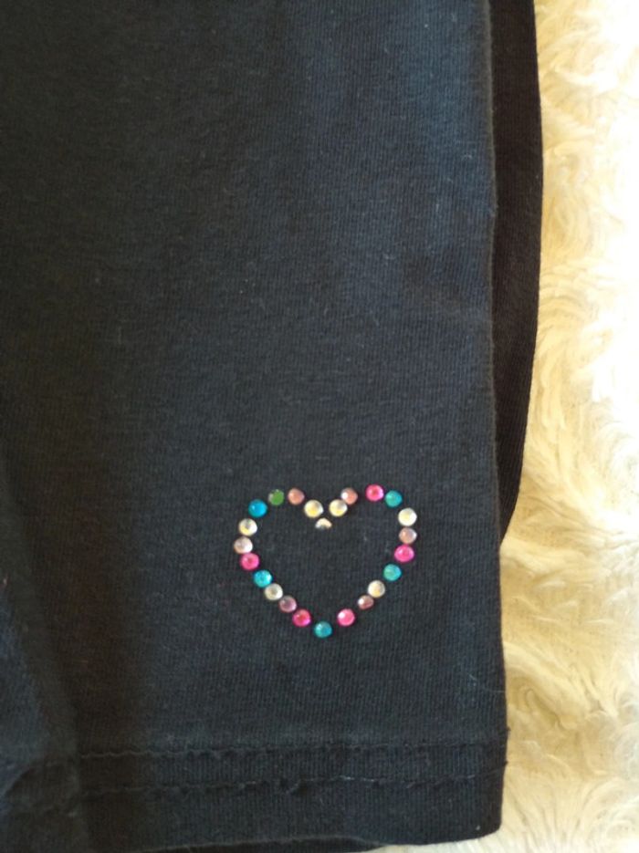 Très bon état. Le legging a été porté avec d'autres hauts, le petit cœur en bas à droite a un "diamant" à moitié cassé (voir la dernière photo). #nathatfcFille24mois