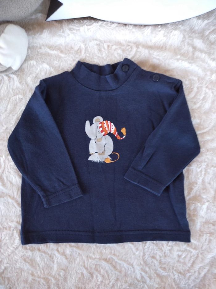 Sous pull col roulé Garçon 6 mois Éléphant 100% coton - photo numéro 1