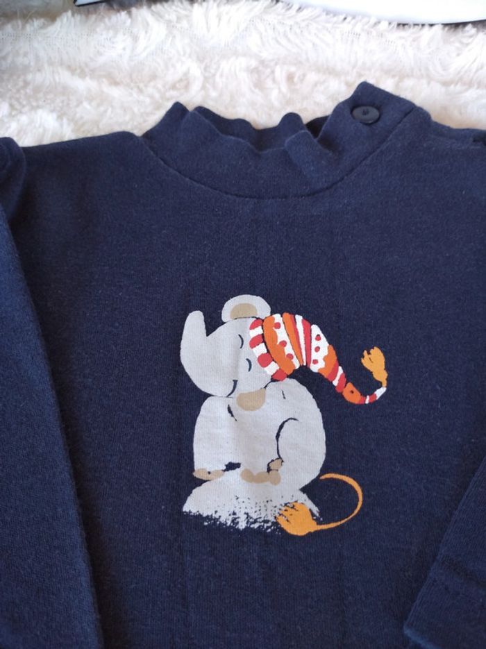 Sous pull col roulé Garçon 6 mois Éléphant 100% coton - photo numéro 2