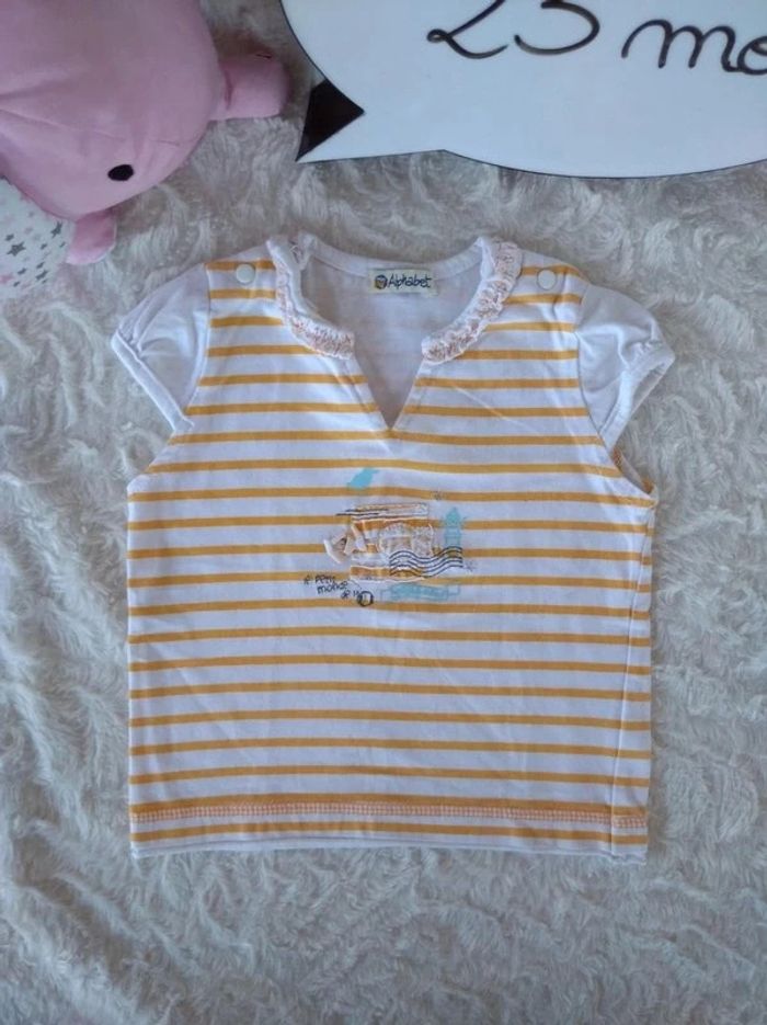 Tee shirt chemise manches courtes Fille 23 mois Mer Alphabet 100% coton - photo numéro 1