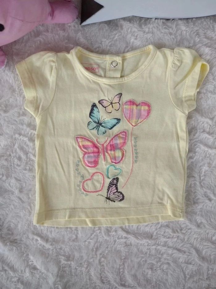 Tee shirt chemise manches courtes Fille 3 mois Papillon Cœur In Extenso 100% coton - photo numéro 1