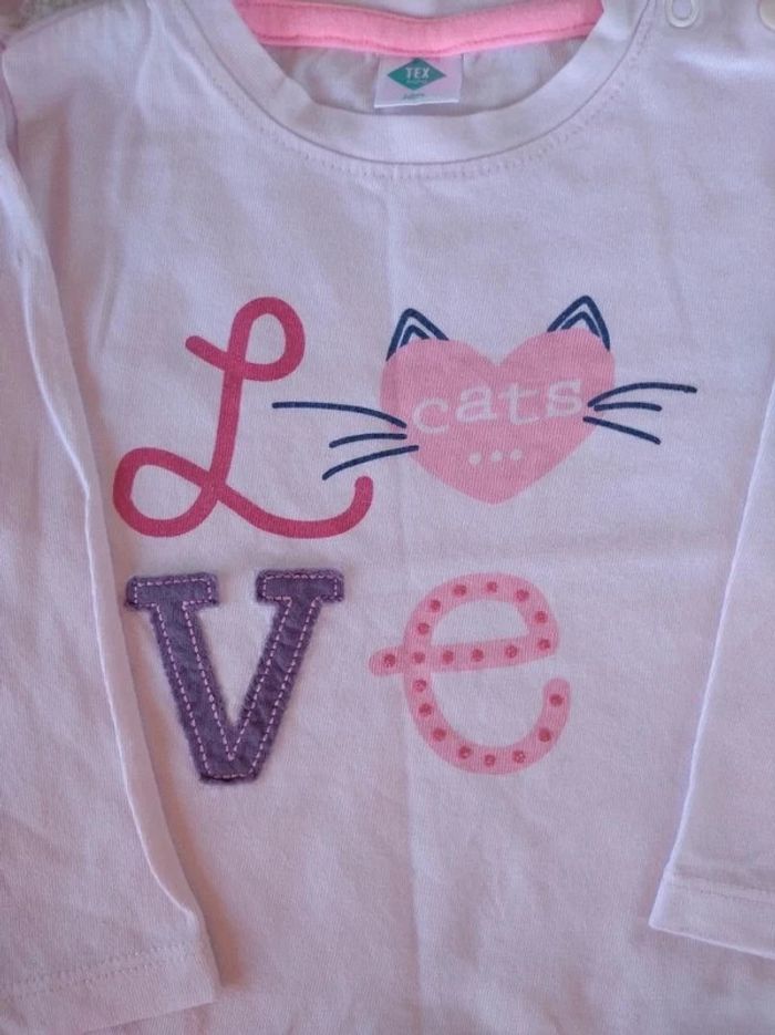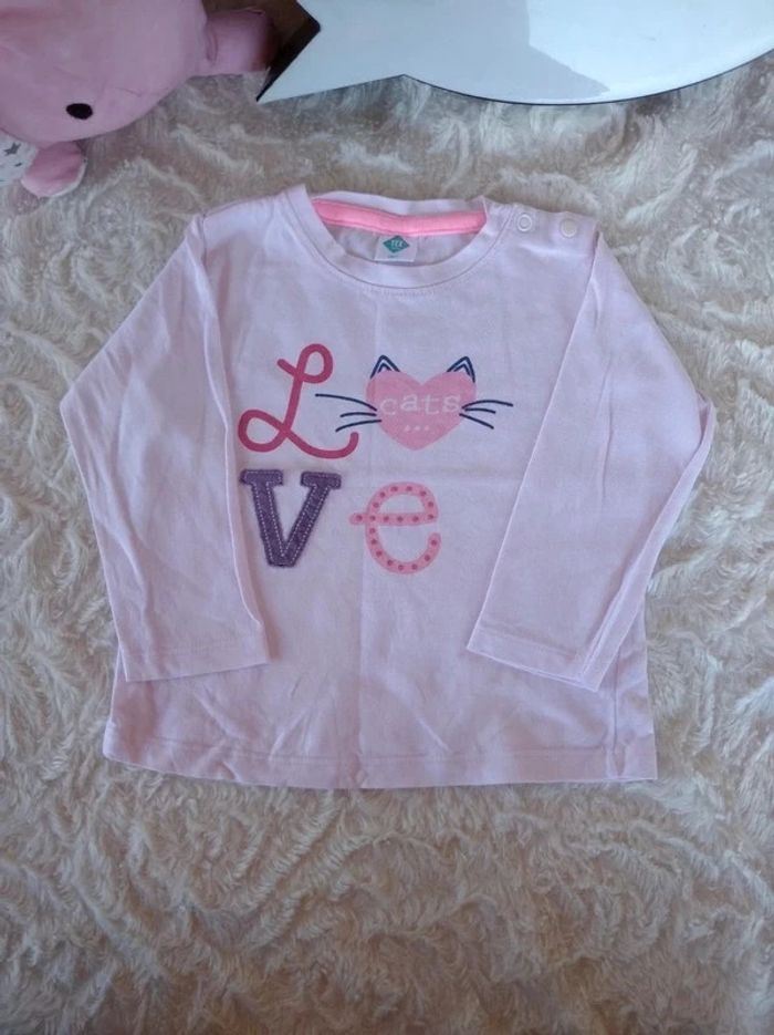 Tee shirt / Chemise manches longues Fille 12 mois "Love" Chat Tex Baby 100% coton - photo numéro 1