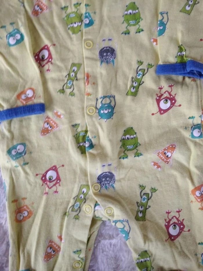 Pyjama grenouillère coton été Garçon 3 mois Monstre Extraterrestre Pik Ouic 100% coton - photo numéro 3