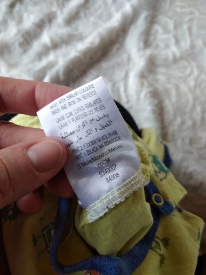 Très bon état même si porté plusieurs fois. Ouverture par pressions sur le devant et au niveau de l'entrejambe pour un habillage et un change plus facile. #nathatfcGarçon3mois