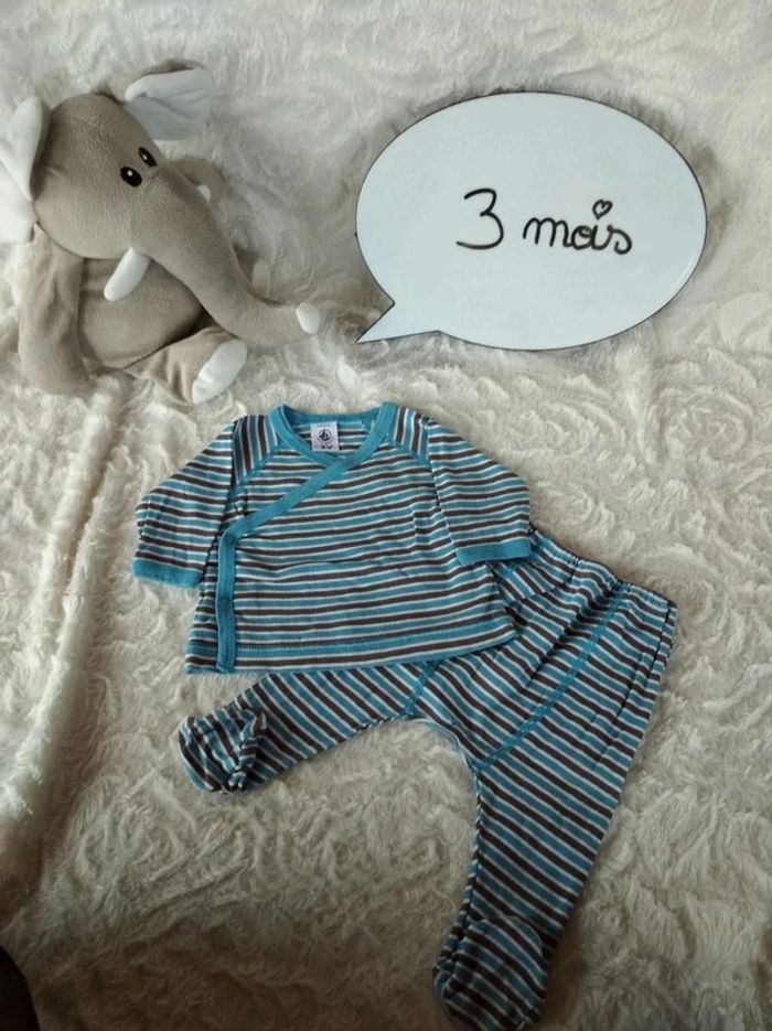 Pyjama 2 pièces avec pieds coton été Garçon 3 mois Petit bateau 100% coton - photo numéro 1