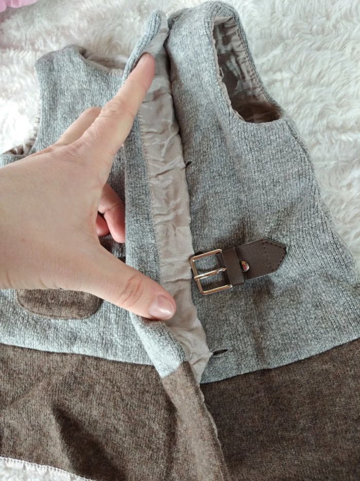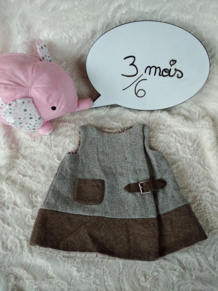 Bon état car 3 petits défauts - voir les dernières photos- (défauts minimes cependant) : un bouton se détache légèrement (c'est le dernier), la pointe de la ceinture est usée (mais un peu de colle et ça ne se verra plus), il y a un petit trou tout en bas (un petit point et le tour est joué). #nathatfcFille3mois