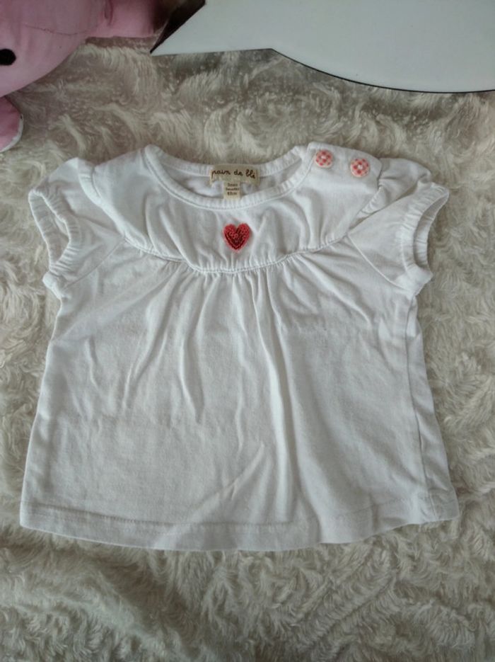 Tee shirt tunique chemise manches courtes Fille 3 mois cœur Grain de blé